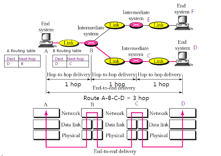 : End๋ ธ๋(์ข ๋จ ๋ ธ๋)๊ฐ์ ๋ผ์ฐํ ์ ๋ด๋นํ๋ ๊ณ์ธต. End-To-End Delivery(Host-To-Host Delivery)
