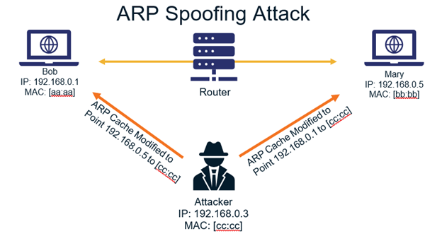 : ๊ณต๊ฒฉ์๊ฐ ํฌ์์์ MAC ์ฃผ์๋ฅผ ์์ ์ MAC ์ฃผ์๋ก ์์กฐํ ARP Reply๋ฅผ ๋ง๋ค์ด ํฌ์์์๊ฒ ์ง์์ ์ผ๋ก ์ ์กํด