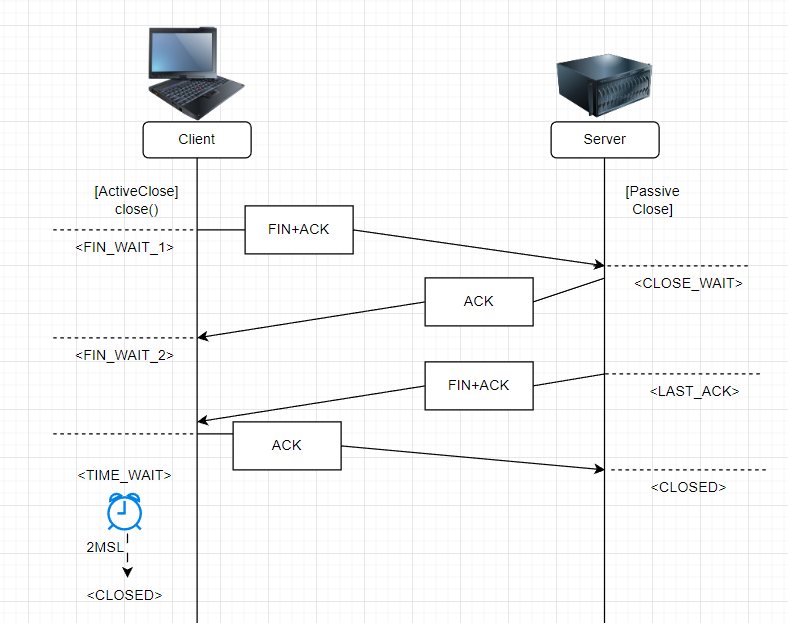 | TIME_WAIT | ๋ง์ง๋ง ACK ์ ์ก ํ 2MSL |